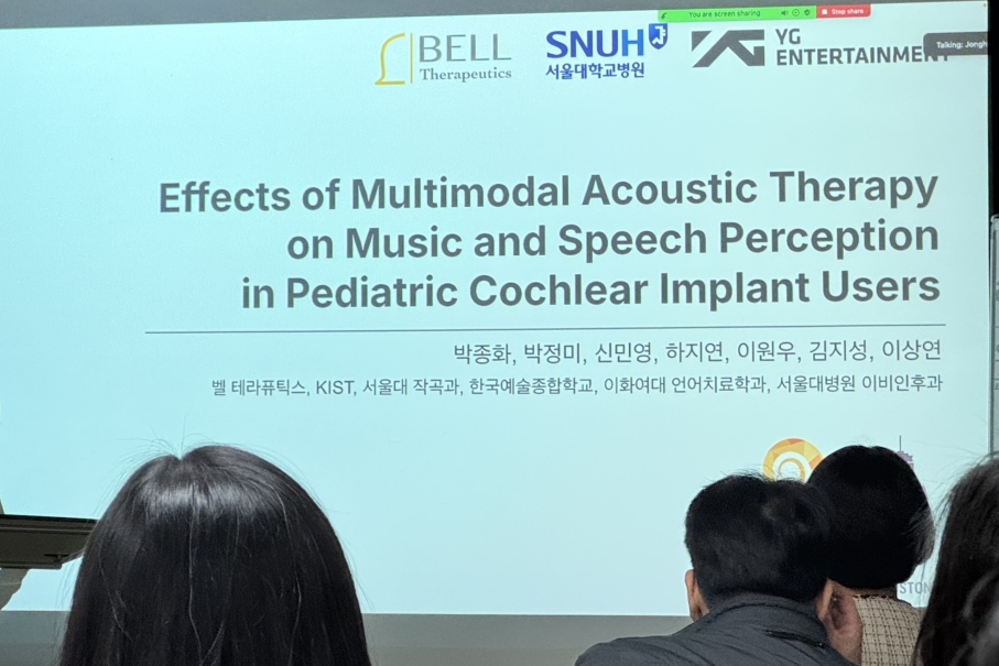 연구진들은 새로운 청력재활 방법인 Multimodal Acoustic Therapy(MAT)를 개발하고 이를 스마트폰 기반 디지털 치료제(DTx)로 구현한 임상시험 결과를 발표했습니다. 이어 임상시험 과정에서 직면했던 난관과 노하우를 공유한 뒤 MAT 재활 방법의 향후 연구 방향에 대해 논의하는 시간을 가졌습니다.