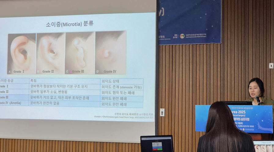 소리의원 장성진 언어팀장 역시 심포지엄에 참석해 'KAAMFS Session1. 청각장애' 세션에서 청각장애 아동의 재활을 주제로 발표를 진행했습니다. 특히 선천성 외이도 폐쇄증에 대한 세분화된 분류와 각 상태에 맞는 맞춤형 청각재활 방안을 소개하여 높은 관심과 호응을 얻었습니다.